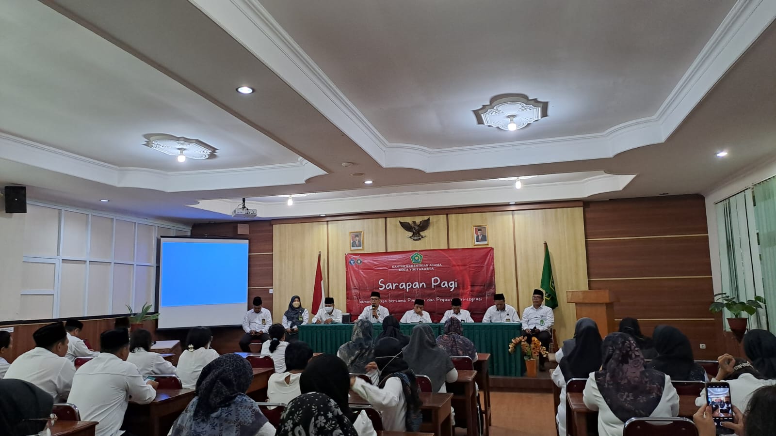 Yogyakarta (Humas) – Kantor Kementerian Agama Kota Yogyakarta menggelar Sambung Rasa Pegawai dan Pimpinan Terintegrasi (Sarapan Pagi), Senin (11/9/2023). Kegiatan sarapan pagi yang bukan sekadar rutinitas, melainkan juga sebagai ajang bersama pimpinan dan pegawai untuk berbagi pandangan, sekaligus menyerap aspirasi dari seluruh pegawai untuk perbaikan kinerja institusi.