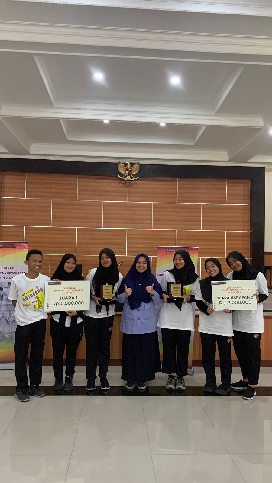 Yogyakarta(MAN 1 YK)– Siswa MAN 1 Yogyakarta berhasil raih juara 1 dan Juara Harapan 2 Lomba Cerdas Cermat (LCC) Sejarah, yang digelar Dinas Kebudayaan Kota Yogyakarta, Rabu(09/08/2023), Ruang Bima Balaikota Yogyakarta.