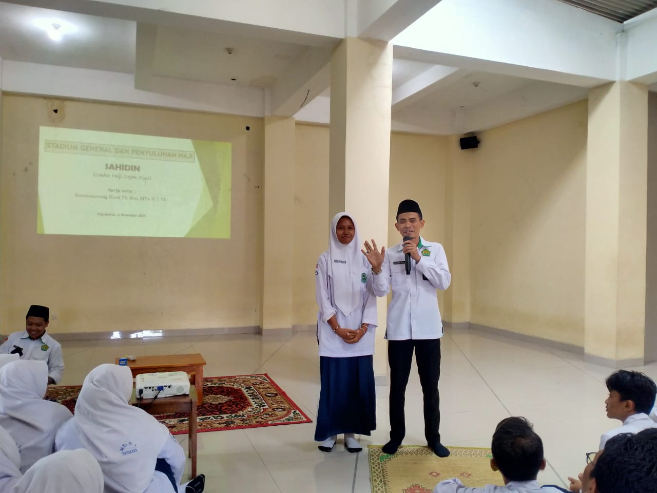 Yogyakarta (MTsN 1 Yogyakarta)- Pada Senin (04/11) siswa kelas IX MTsN 1 Yogyakarta mengikuti pembekalan materi persiapan manasik haji dan sosialisasi Sadar Haji Sejak Dini (SAHIDIN) yang disampaikan oleh perwakilan seksi Penyelenggaraan Haji dan Umroh (PHU) Kemenag Kota Yogyakarta, M Tahrir. Kegiatan sosialisasi ini dilaksanakan di Masjid Darul Ulum MTsN 1 Yogyakarta. Kepala MTsN 1 Yogyakarta Musa Surahman, hadir memberikan sambutan didampingi Waka Humas Ritaningsih Sudjoko.
