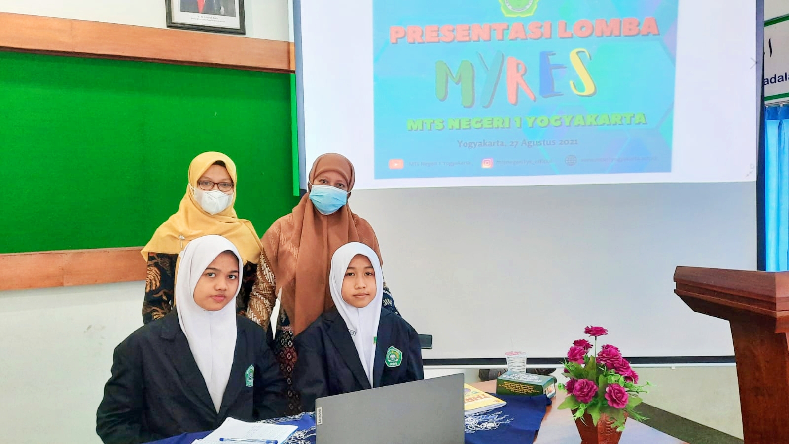 Yogyakarta (MTsN 1 Yogyakarta_Matsayo) – Setelah berhasil menembus 50 besar proposal penelitian terbaik pada ajang bergengsi MYRES (Madrasah Young Researchers Super Cham) 2021, Tim peneliti dari MTsN 1 Yogyakarta mendapatkan kesempatan untuk mengikuti presentasi proposal untuk menuju babak selanjutnya. Presentasi proposal ini dilakukan untuk menyaring 15 proposal terbaik. Tim yang terdiri dari dua siswa MTsN 1 Yogyakarta yaitu Arika Amalia Fatma dan Calizta Aisyah Diani dengan penuh semangat siap mengikuti presentasi tersebut. Hal itu dikarenakan MYRES adalah kompetisi tingkat nasional yang digelar oleh Kemenag untuk menumbuhkan budaya meneliti di kalangan siswa Madrasah dan merupakan ajang bergengsi yang selalu dinanti-nanti.