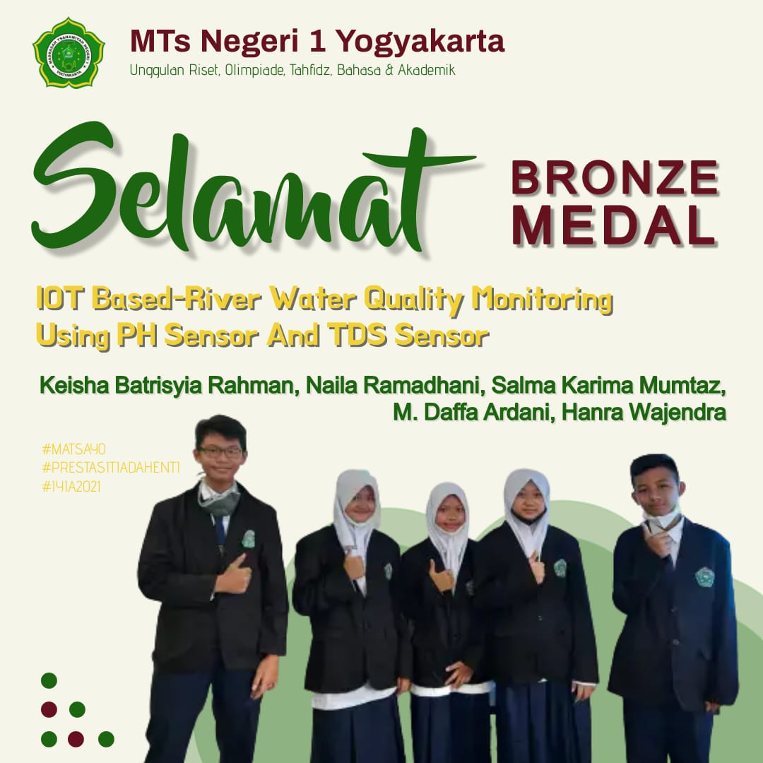 Yogyakarta (MTsN 1 Yogyakarta) – Mandiri dan berprestasi, slogan kebanggaan yang terus dikejar MTsN 1 Yogyakarta (Matsayo) untuk terus berprestasi. Kali ini Matsayo berhasil menorehkan prestasi di salah satu ajang internasional. Setelah pekan lalu meraih medali Perak dan medali perunggu di ajang internasional Global Competition for Life Science (GloCoLis 2021), kali ini salah satu tim riset berhasil merebut medali perunggu dari ajang International Young Inventors Award (IYIA 2021) Tim MTsN 1 Yogyakarta bersaing dengan ratusan peserta dari berbagai negara yang diprakarsai oleh Indonesia Invention and Innovation Promotion Association (INNOPA).