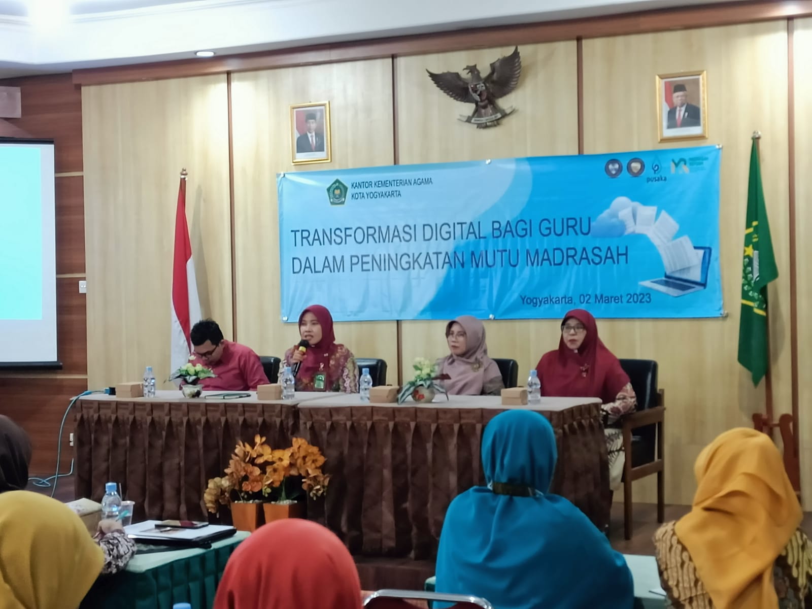 Yogyakarta (Humas) – Untuk meningkatkan kualitas pembelajaran Seksi Pendidikan Madrasah mengadakan kegiatan transformasi digital bagi guru. Kegiatan berlangsung di Aula 1 Kemenag Kota Yogyakarta, Kamis (2/3/2023). Acara diikuti 30 peserta terdiri dari Guru, Perwakilan KKG MGMP, Kepala Madrasah dan Waka Kurkulum.